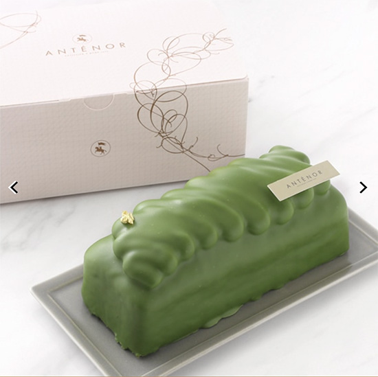 使われている宇治抹茶は、京都宇治の老舗茶問屋「北川半兵衛商店」とアンテノールのパティシェが協力して作り上げた「京の鶯〜うぐいす」というお茶で、非常に香り豊かで洋菓子に最も合う抹茶となりました。