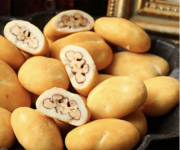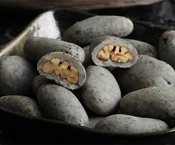 北米産の天然ピーカンナッツを香ばしいキャンディコーティングをし、黒ごまペーストとごま粉末を練り込んだクーベルチュールチョコで包みんだ和風のチョコレートです。